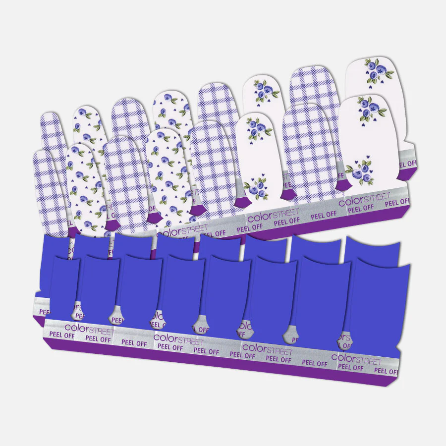 Sweeten your picnic-day manicure with Blueberry Cutie. This set includes Blueberry Cutie Tips, violet blue dual-ended French creme tips, and Blueberry Cutie Overlay, a clear overlay with a blueberry and gingham check pattern to layer over tip strips.
