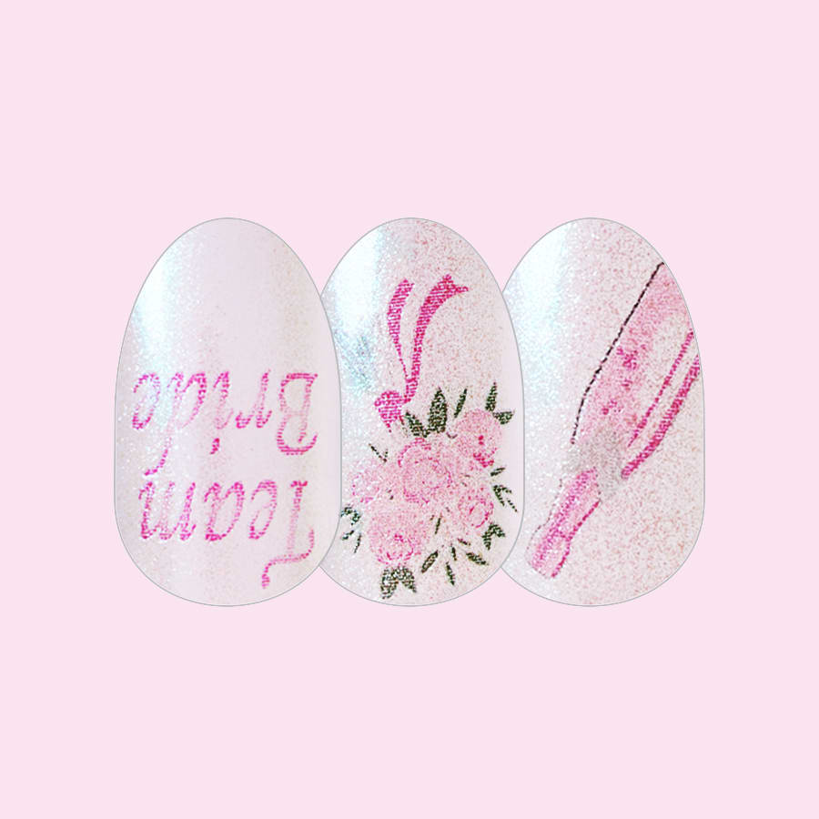 Team bride all the way with this blue-flashed champagne blush designed with bachelorette motifs.