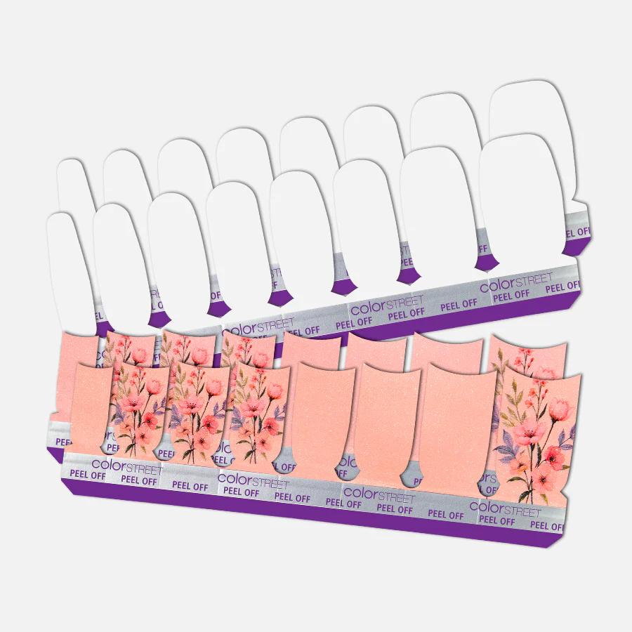 Stop by the local floral shop with these shimmery coral dual-ended French tips with a floral pattern. Dual-ended French tips are versatile and can be worn as either a traditional or French manicure.