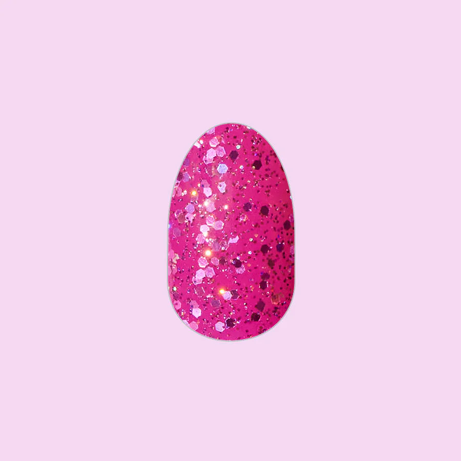 This vibrant magenta with scattered holographic glitter blooms under the scorching sun.