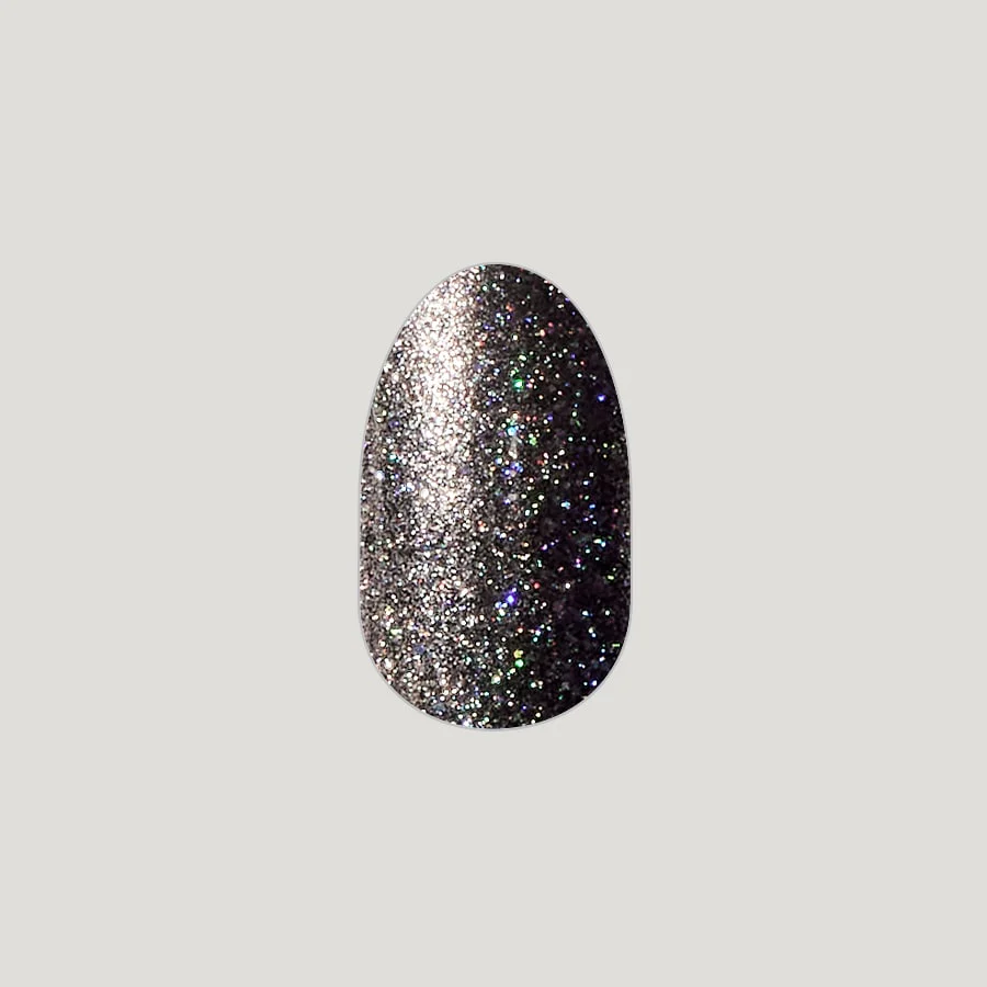 Get a glamorously galactic vibe with Light Year, a sparkling holographic and gunmetal grey glitter.