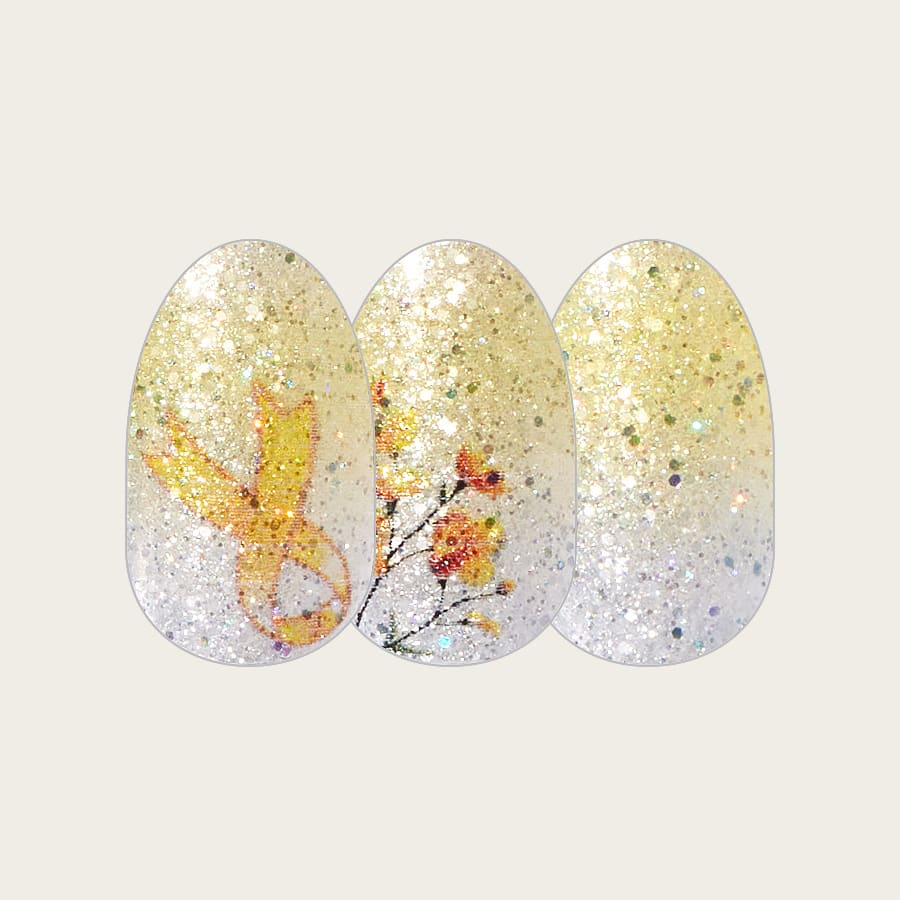 Support Endometriosis Awareness with Power to Endure, a glittering yellow and white ombré design with a golden ribbon motif and delicate flower accents.