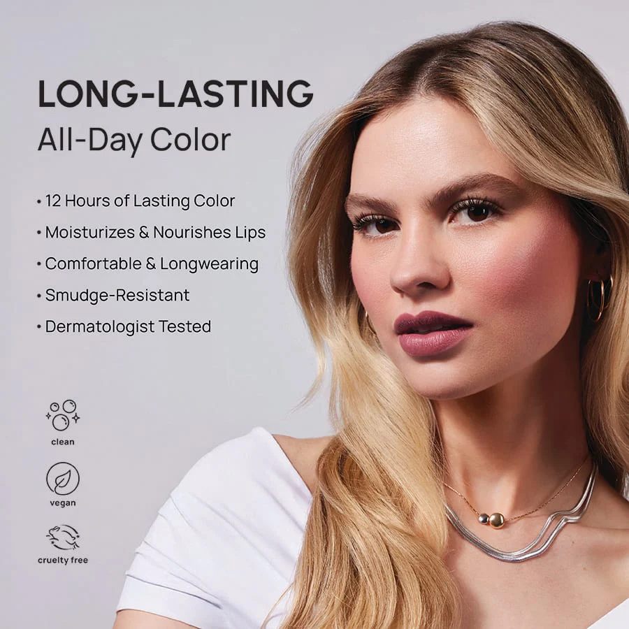 Treat your lips to ultimate color and care with our reformulated, lightweight lipstick – now with hyaluronic acid and ceramides, two lip-loving ingredients that boost hydration! Swipe on for a bold, nourished, and moisturized pout.